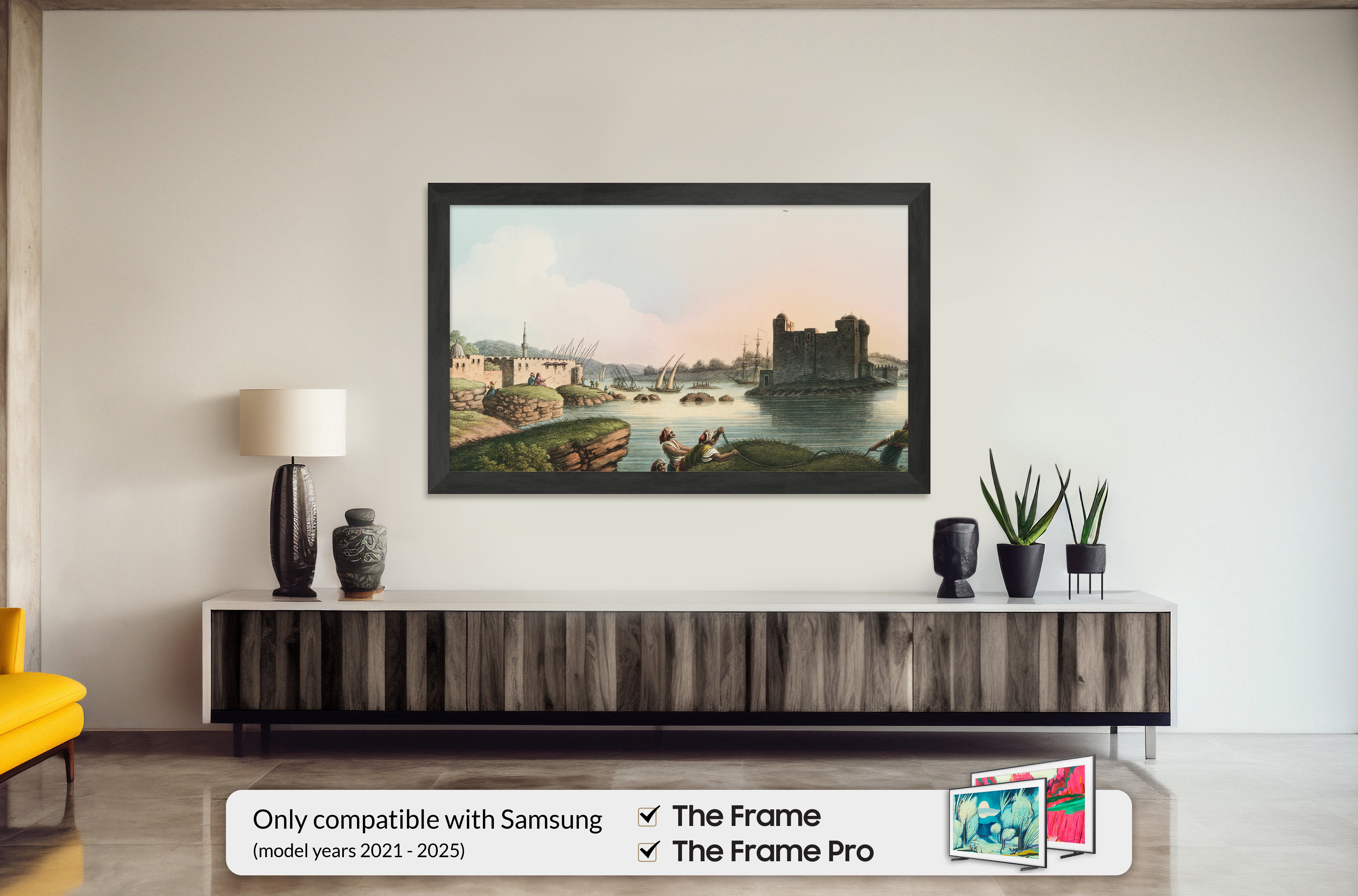 Each frame hooks onto the top of your Samsung Frame television and clips into place at the bottom to perfectly align with the edge of the TV screen. All frames can be easily installed by any consumer with no technical knowledge.