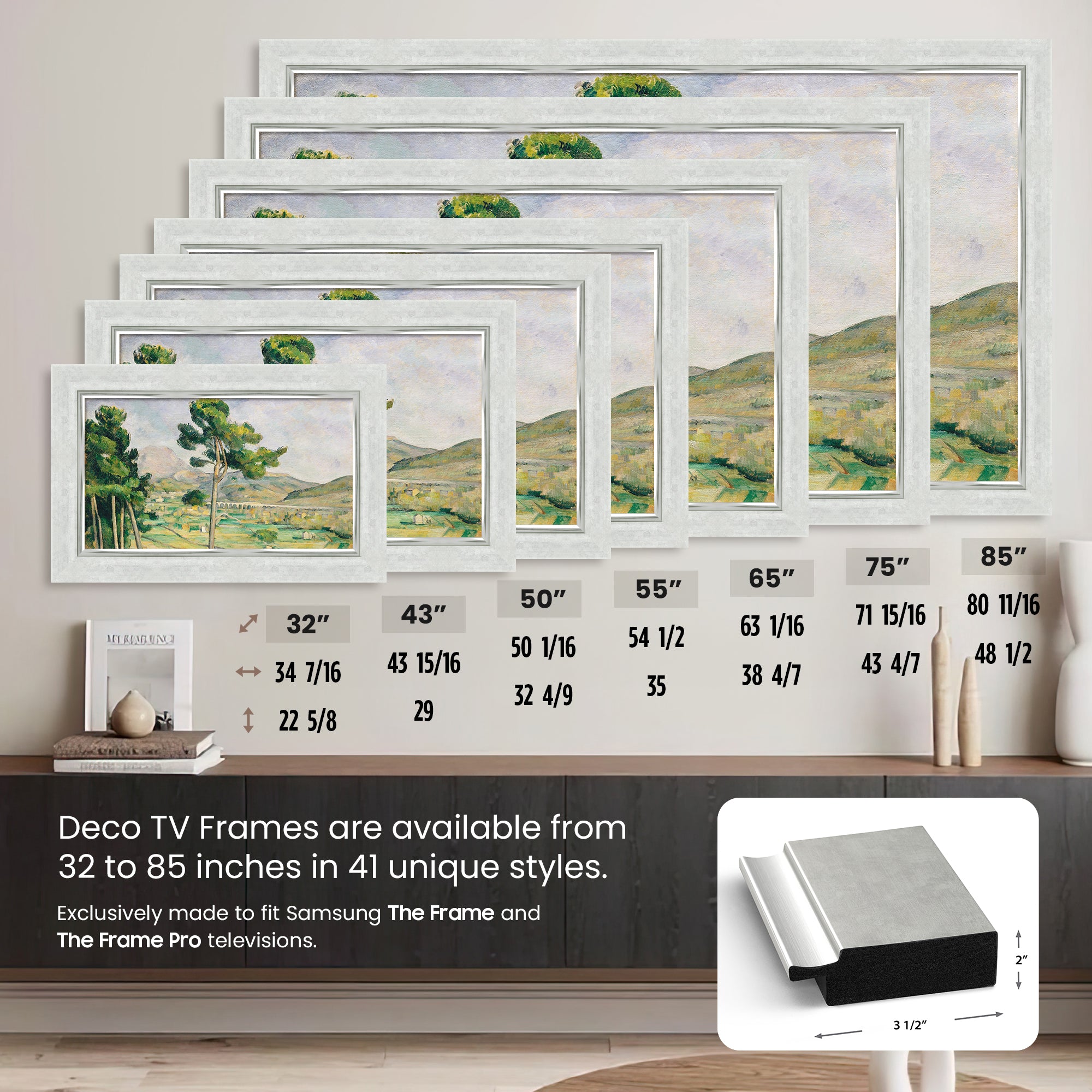 This premium decorative TV frame is made to perfectly fit any size Samsung Frame TV. The frame ships directly to you in four easy to assemble pieces and can be snapped together and fully attached to your Samsung TV in under 2 minutes.